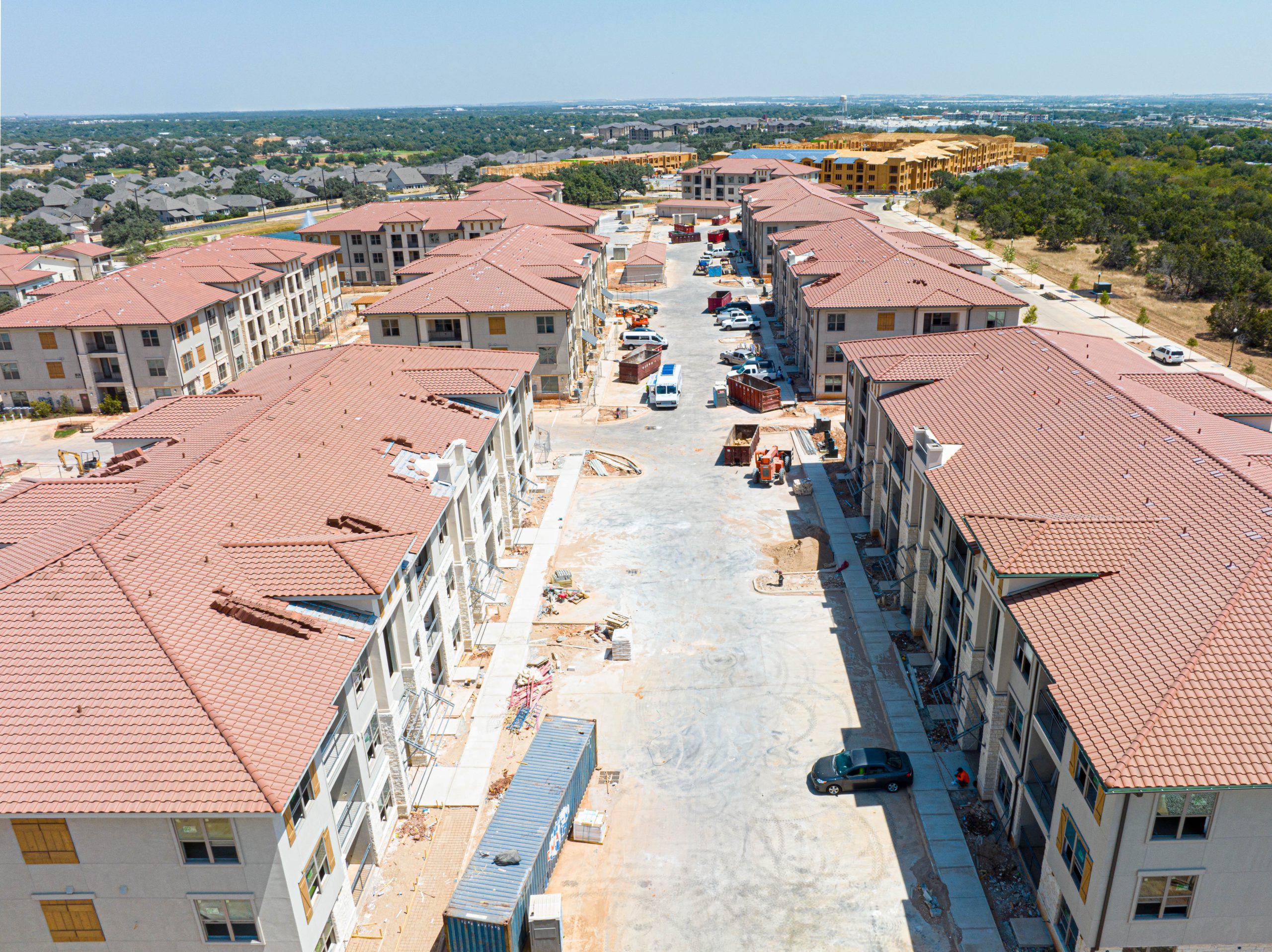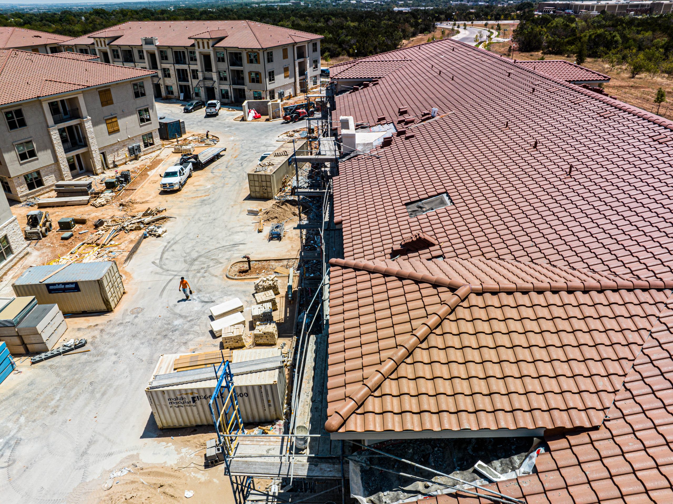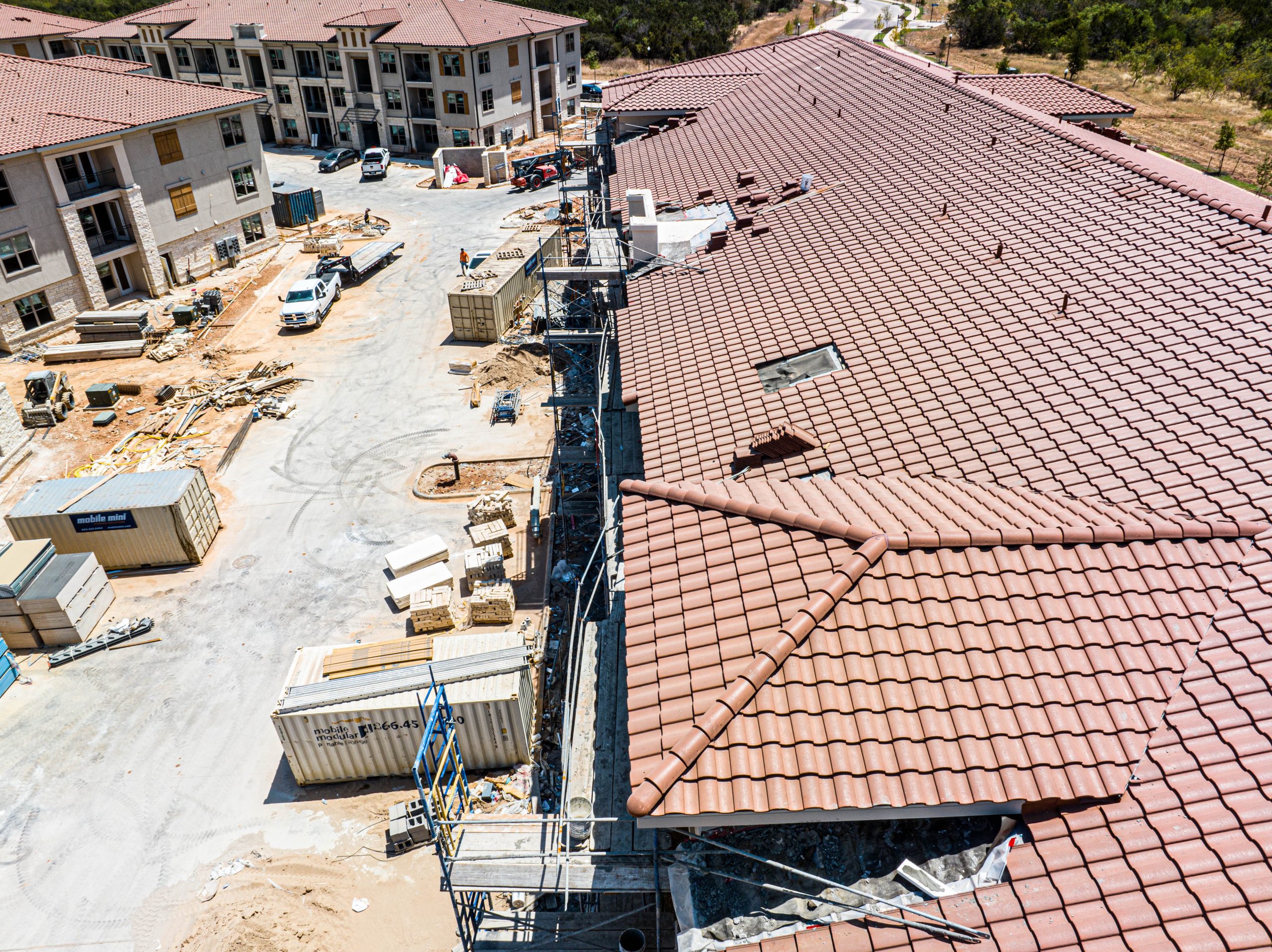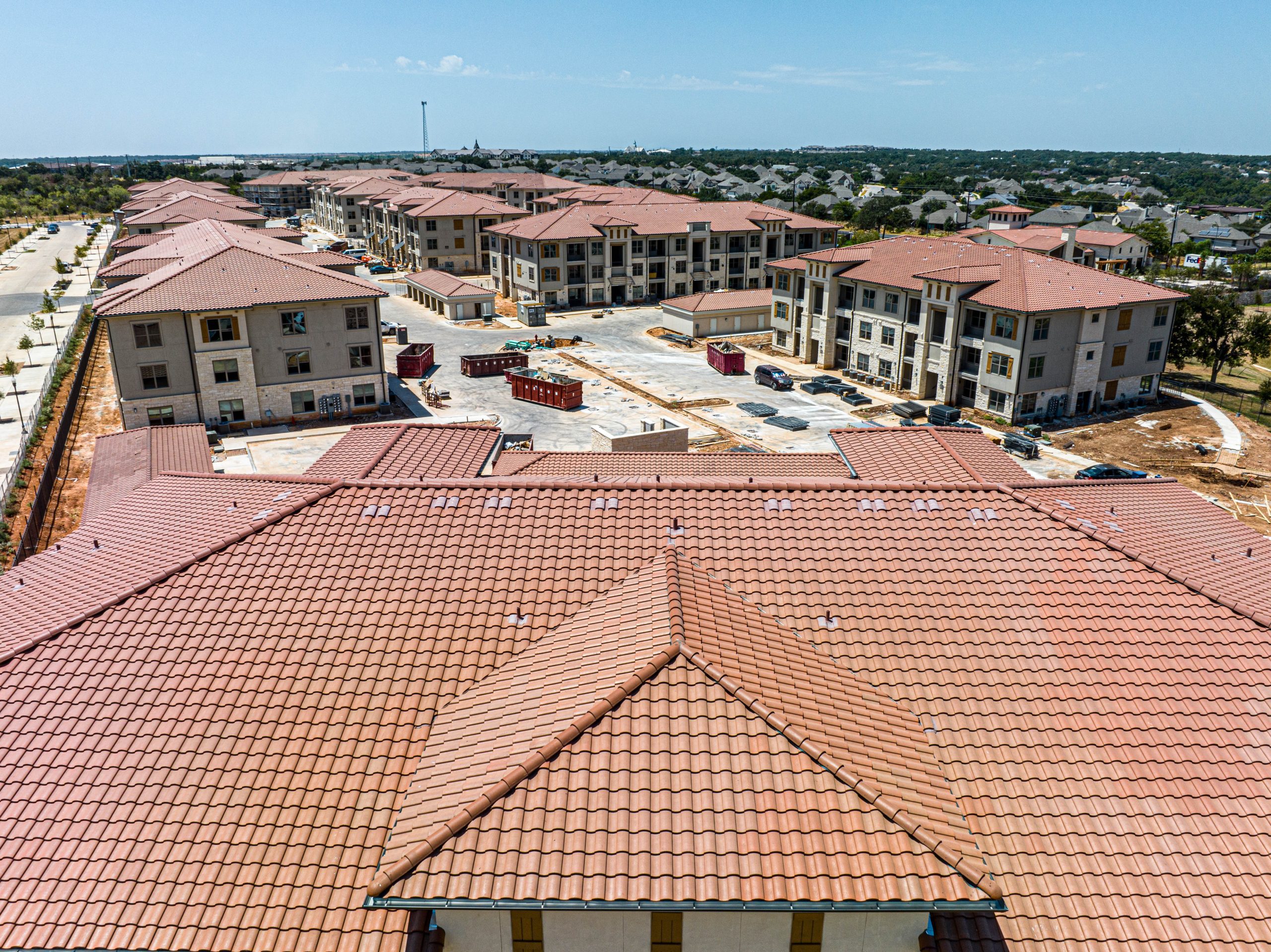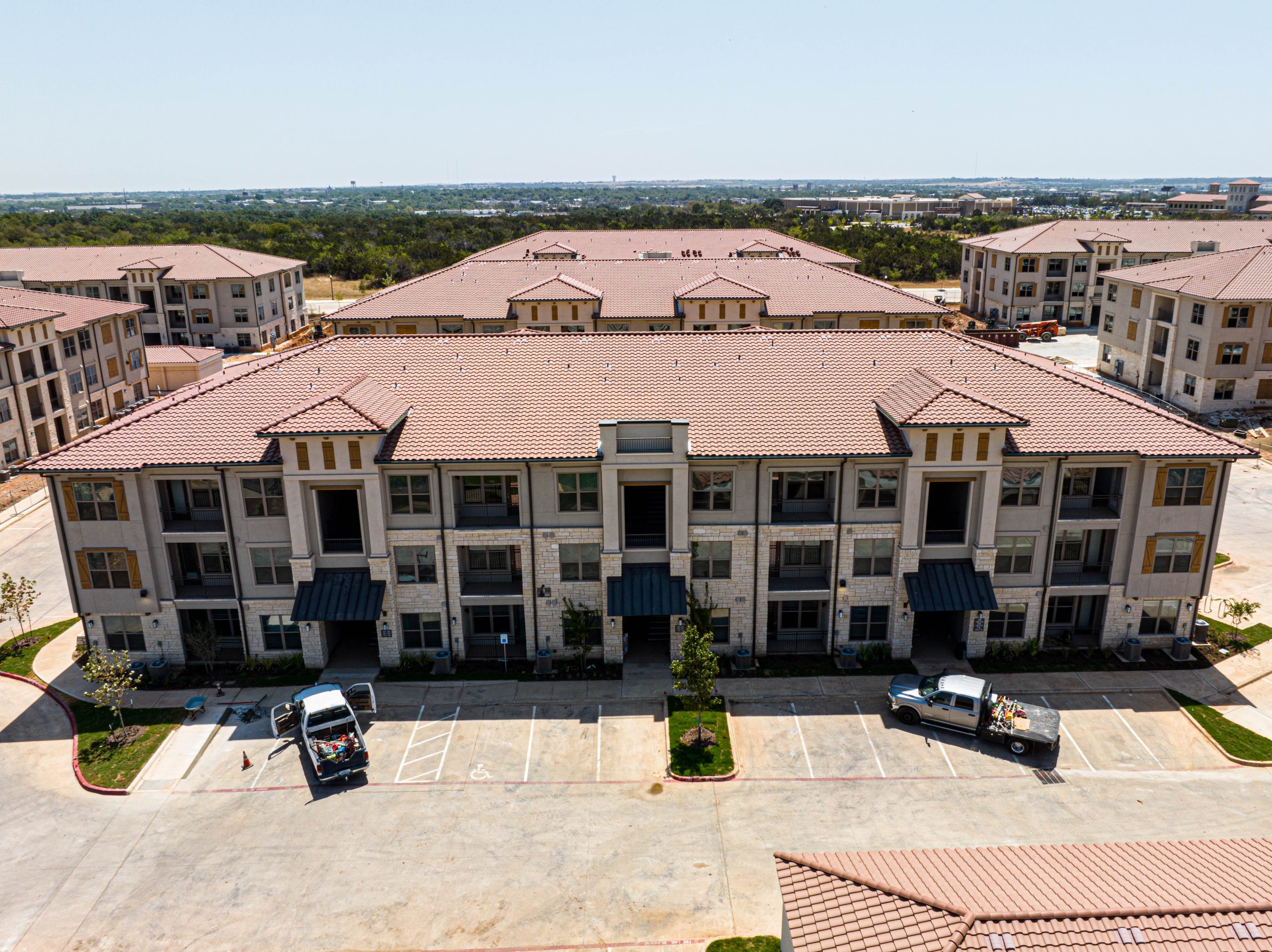This new construction multi-family complex was completed with concrete Spanish Barrel Tile. The project consisted of roofing 12+ residential centers in the tile as well as some small roof overhangs and a pet shelter in metal. Paradigm Roof+Shield was awarded the NTRCA’s Golden Hammer for this project, which clearly showcases their ability to operate throughout the state of Texas with a high level of craftsmanship.