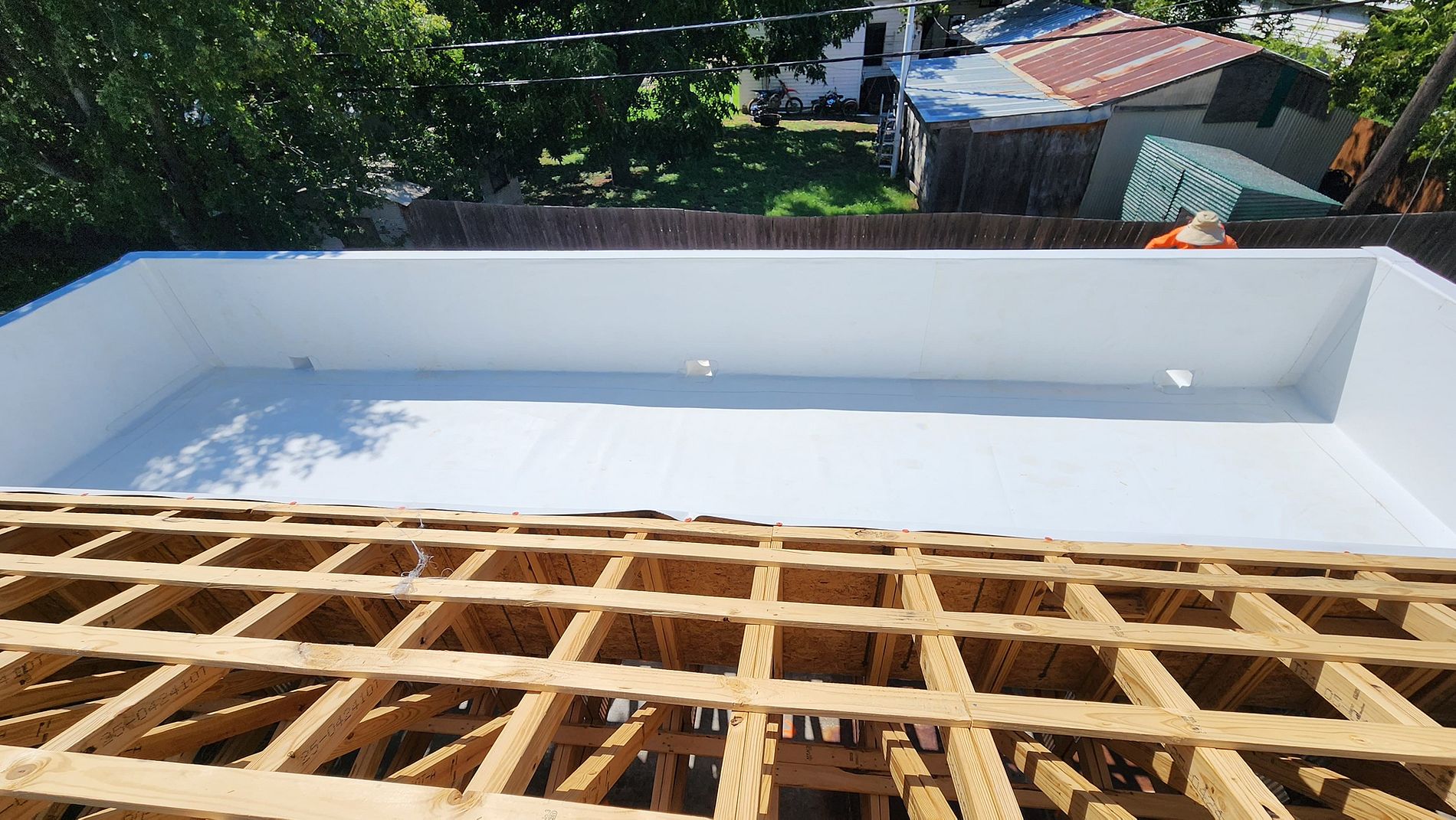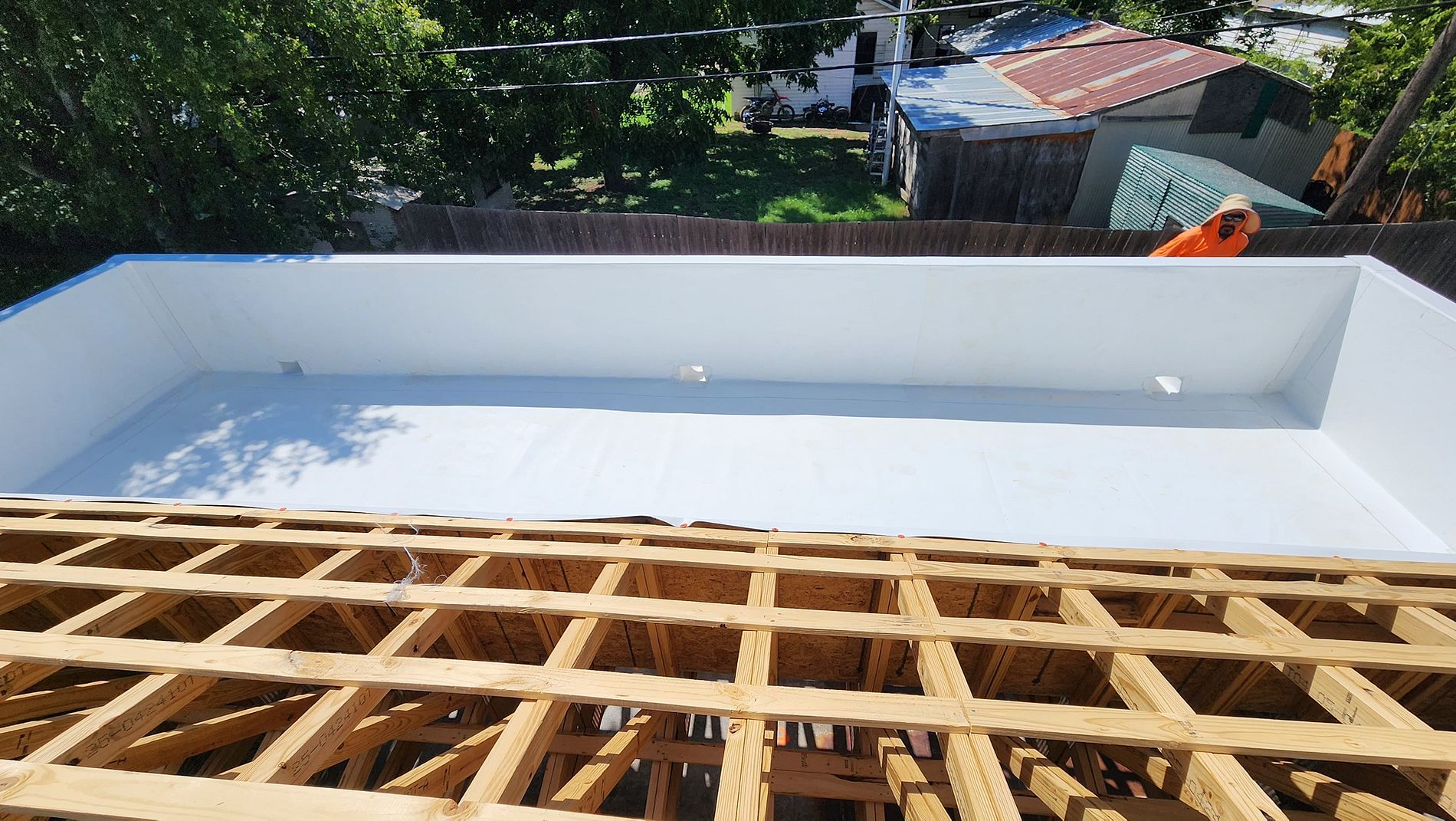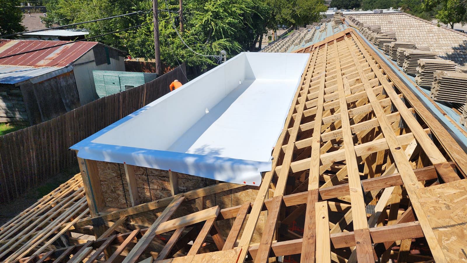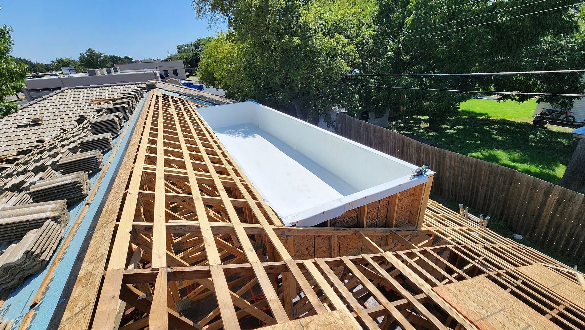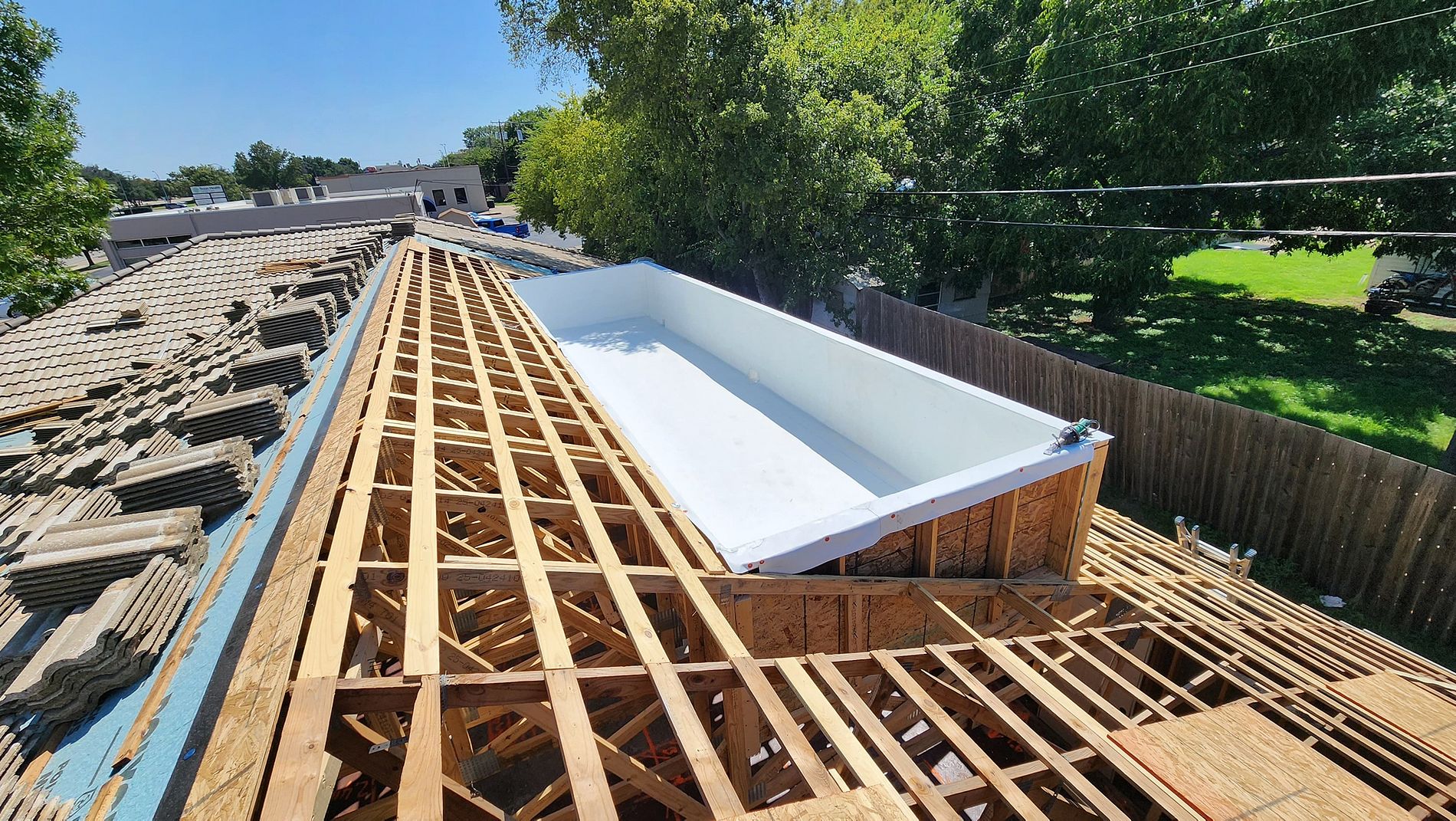 Paradigm removed existing tile in this project, replaced some damaged framing and then installed new TPO in a mechanical well and then re-installed the existing tile to help the customer save some money while still being protected by an awesome roofing system.