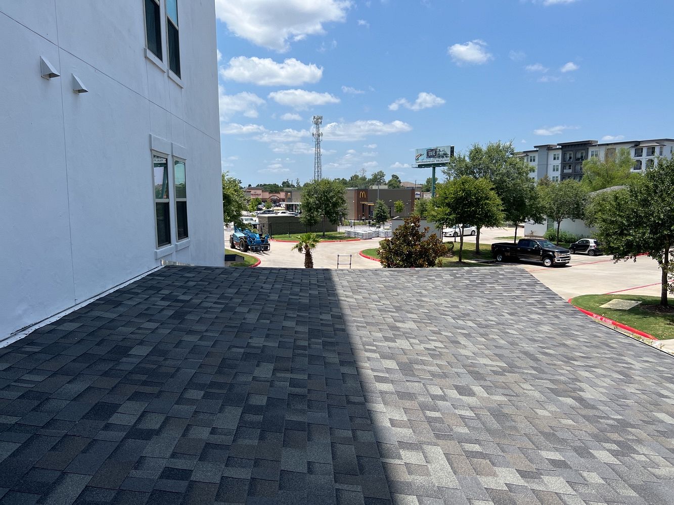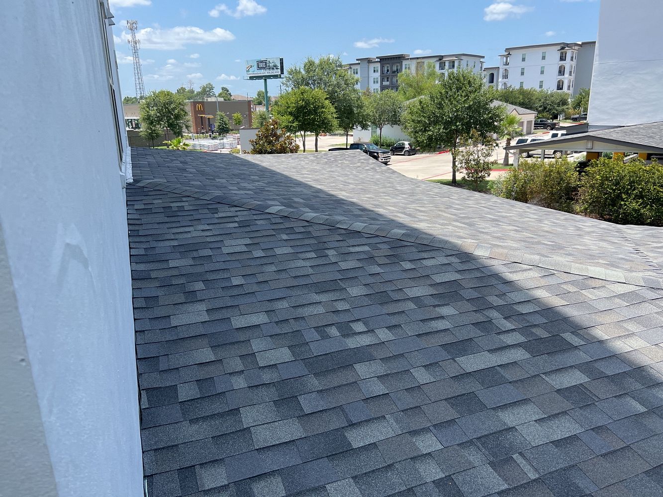 This job consisted mainly of shingle repairs throughout an apartment complex based outside of Houston, TX. We tore off shingles, re-worked the gutter system, installed new ice and water shield by Carlisle and installed Malarkey shingles to help ensure this complex stays watertight for its residents for years to come.