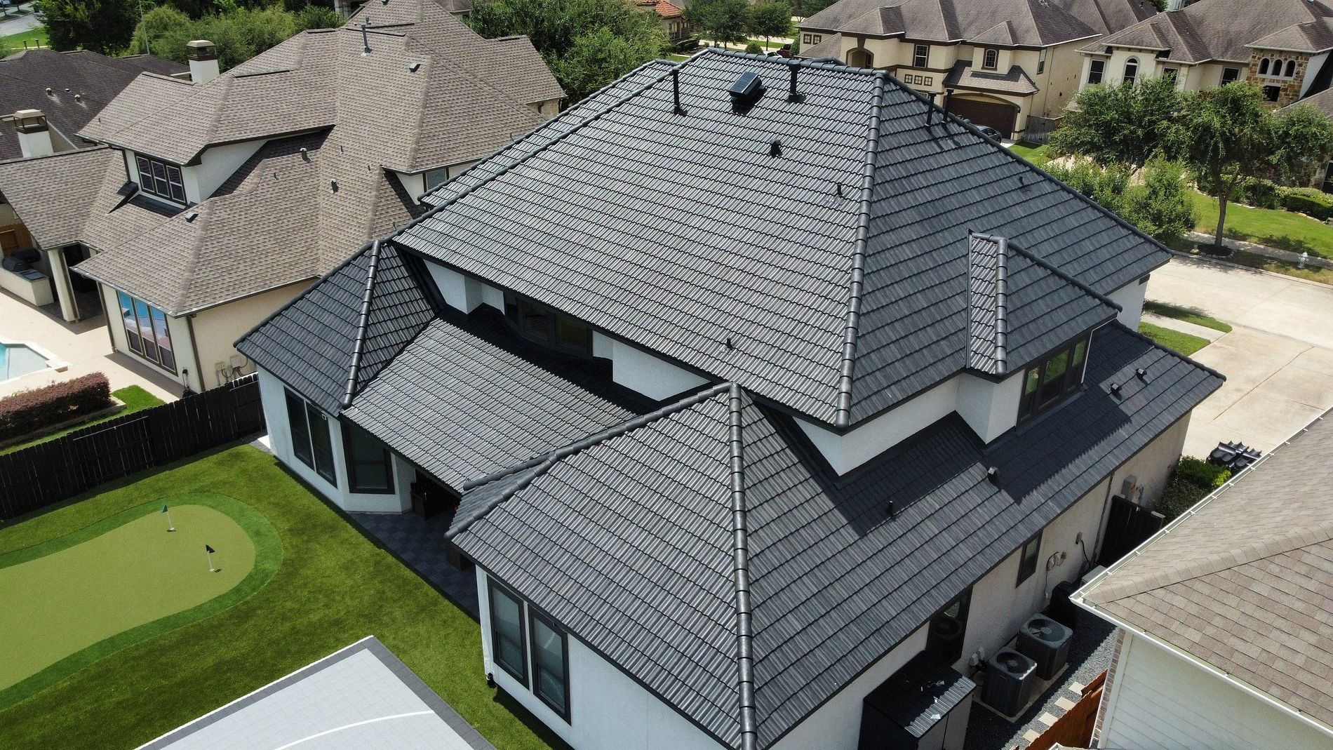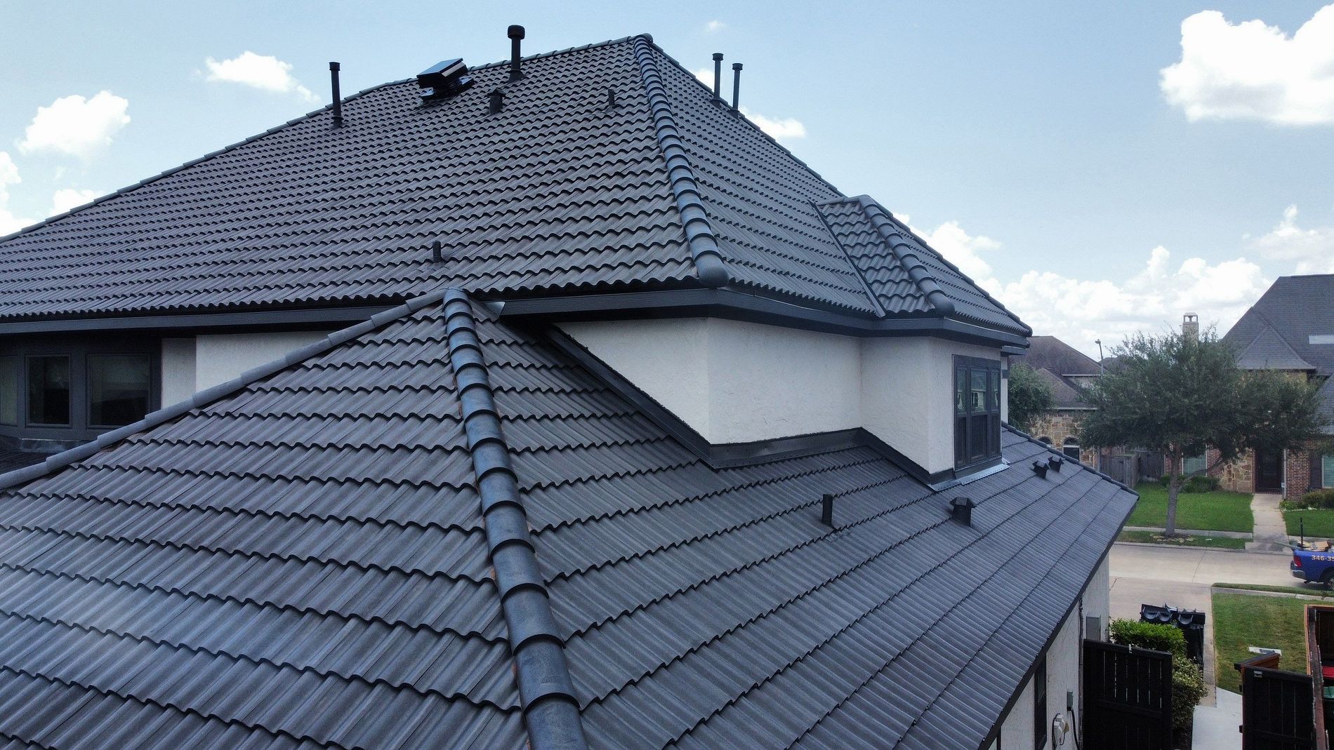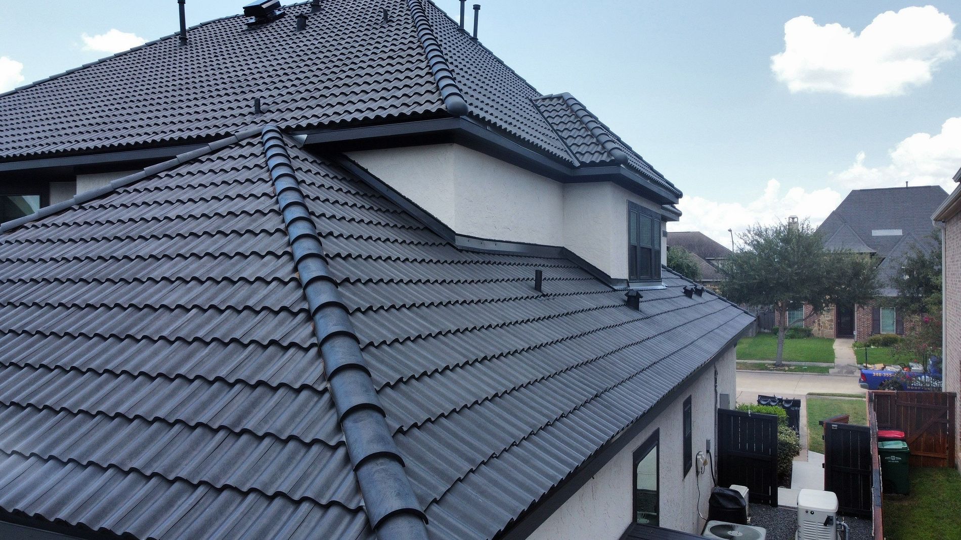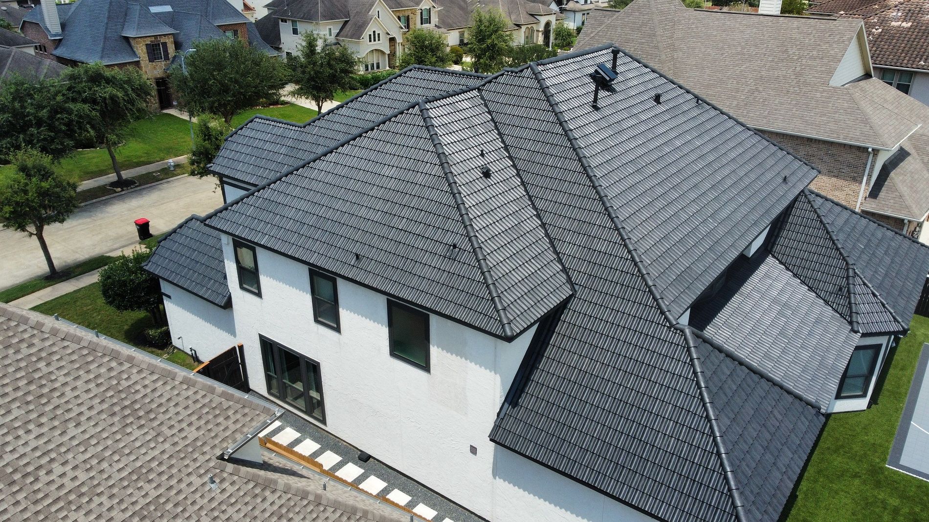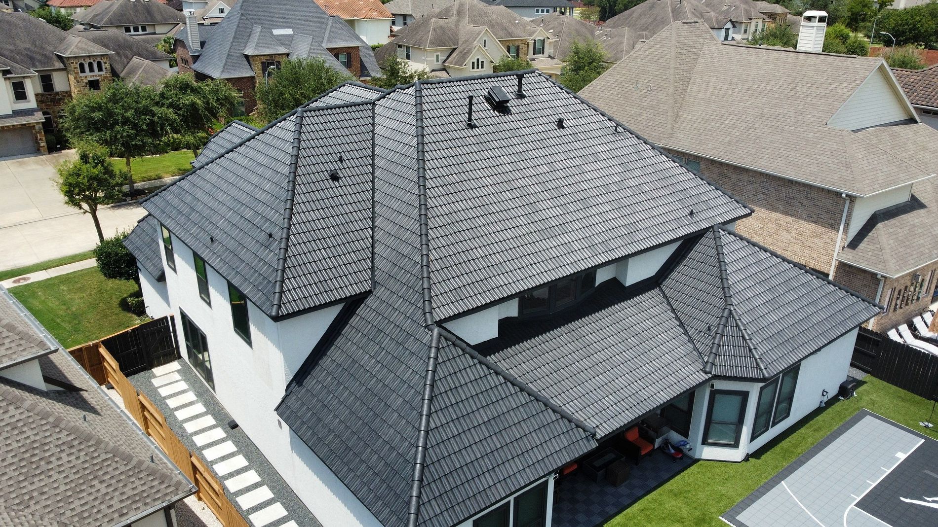 This was a two story house located in Sugar Land, TX where Paradigm removed architectural shingles and installed Brava’s beautiful Spanish Tile in their Onyx color. This homeowner was thrilled with the contrast between the stucco and their roof and loved having open valleys to get water off the roof as quickly as possible. This entire deck was covered in Owens Corning PSU 30 Ice and Water Shield and built according to Brava’s Endurance Warranty. Look at the before and after pics!